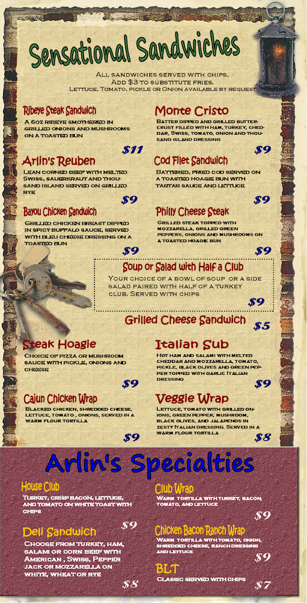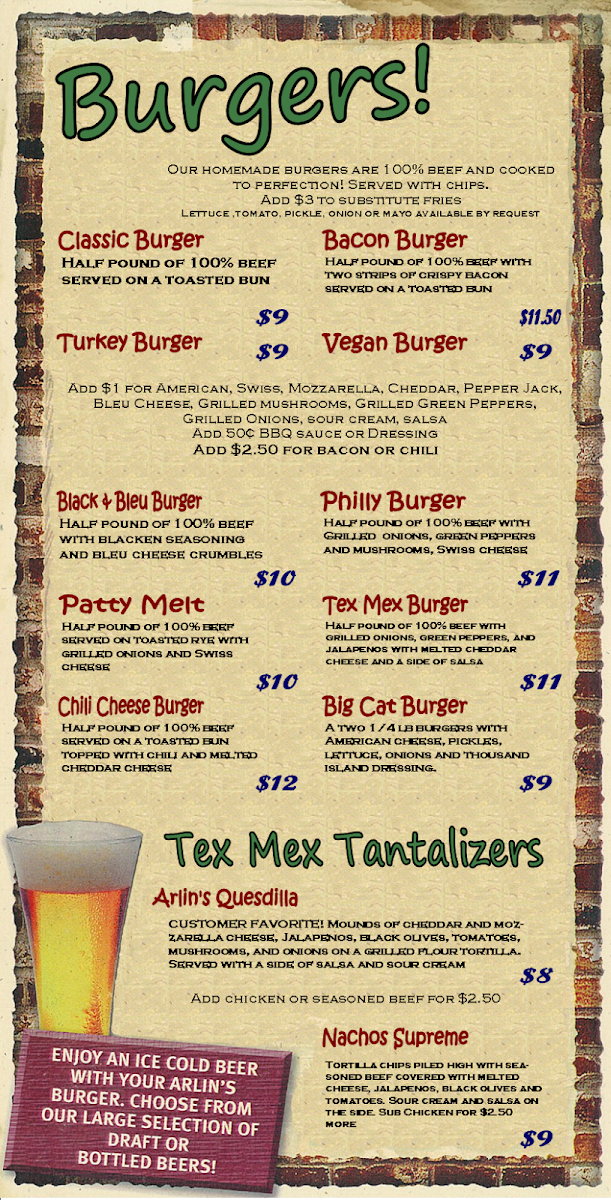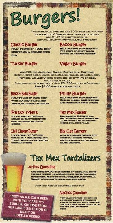 Arlin's Bar & Garden Menu